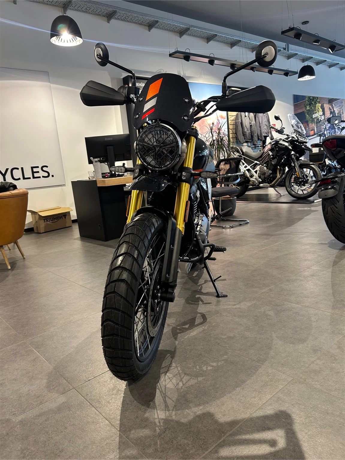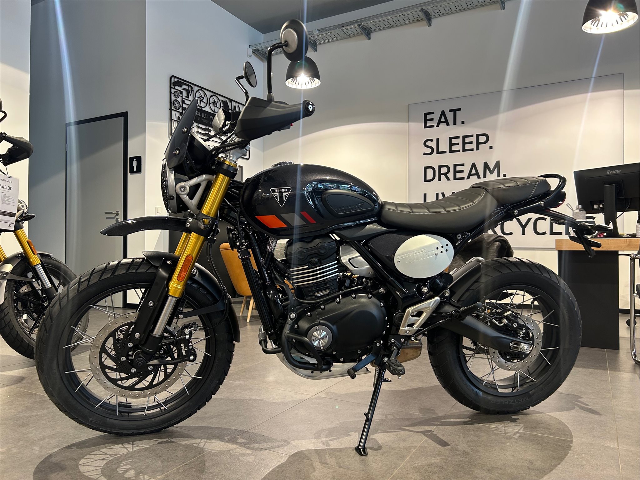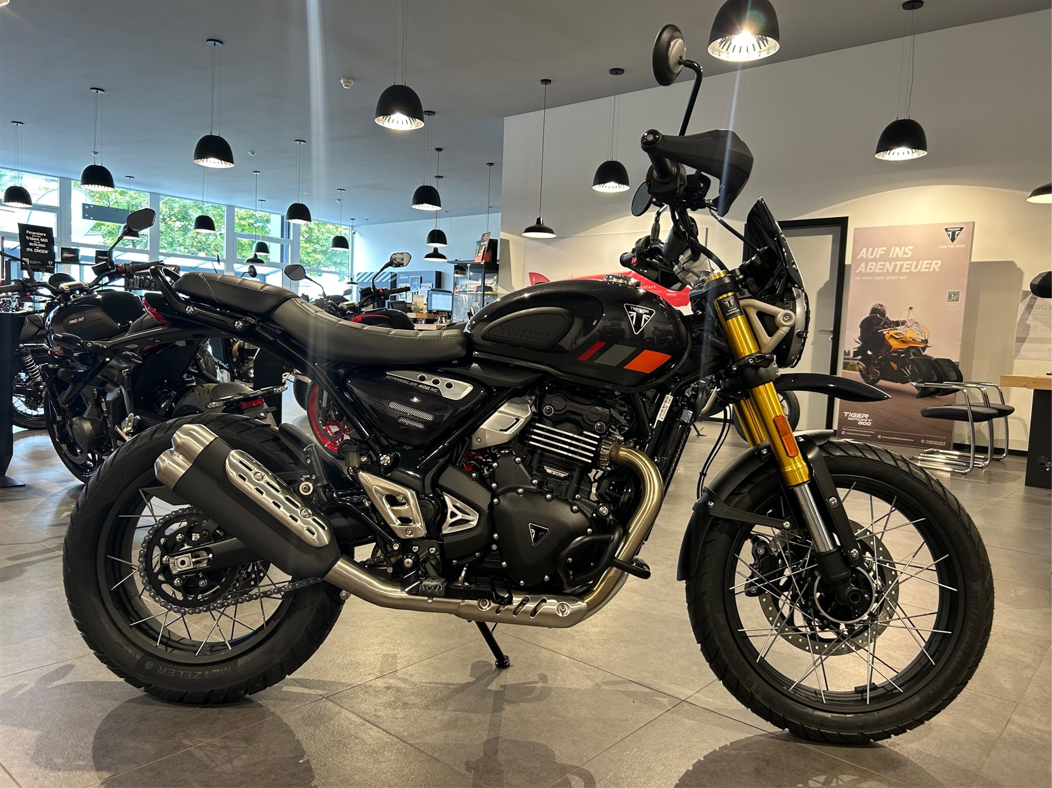 Entdecke den weniger ausgetretenen Pfad. Durchsetzungsfähige Silhouette und authentische Triumph-Scrambler-Design-DNA.